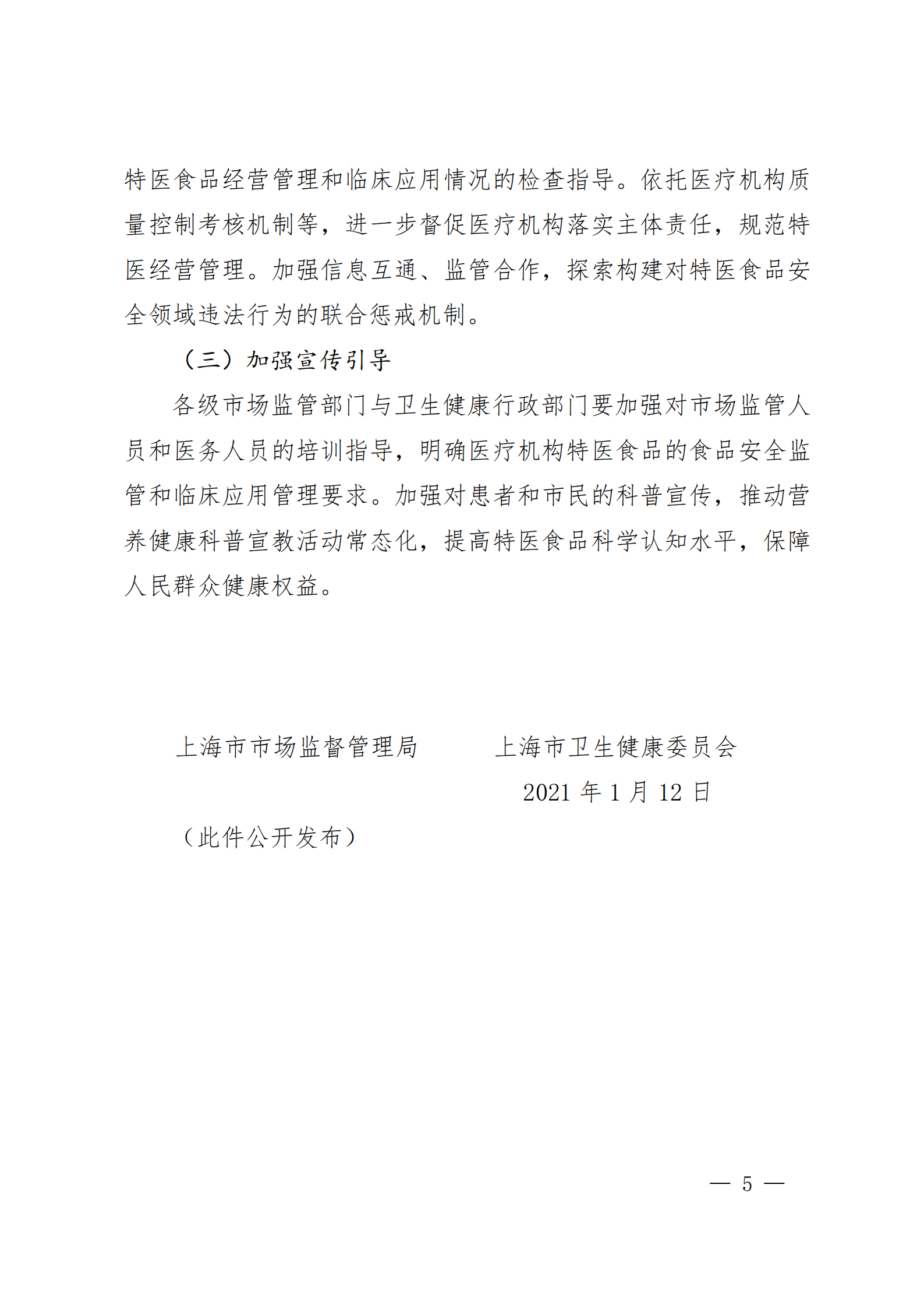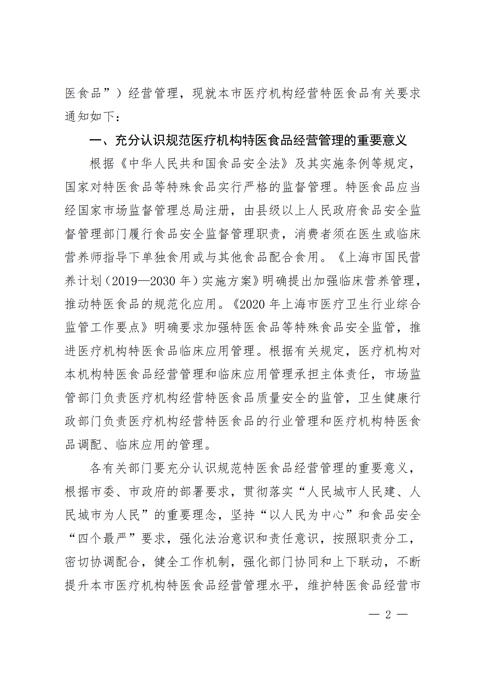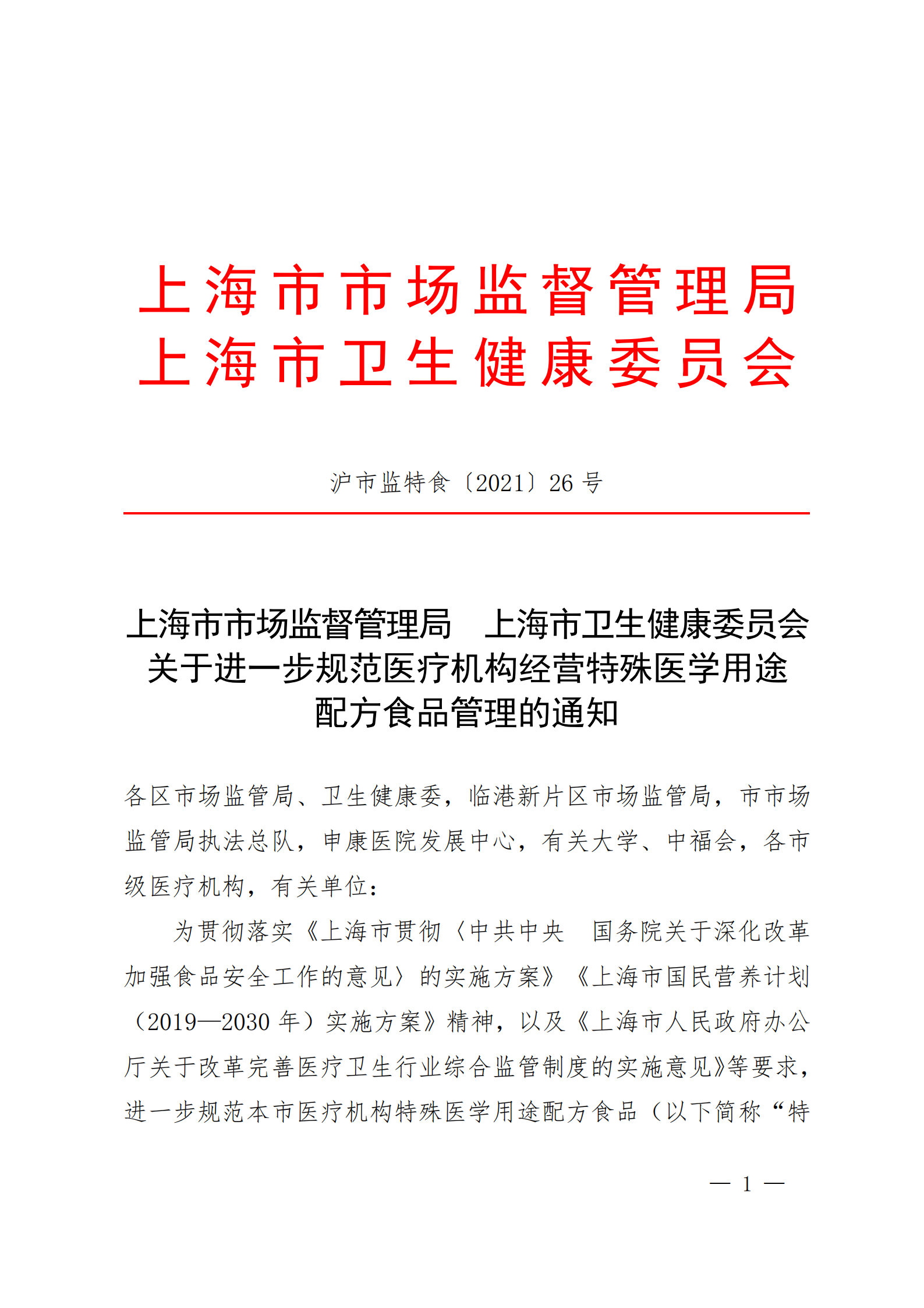 上海市市場監(jiān)管局聯(lián)合上海市衛(wèi)健委發(fā)布關于進一步規(guī)范醫(yī)療機構經營特醫(yī)食品管理的通知