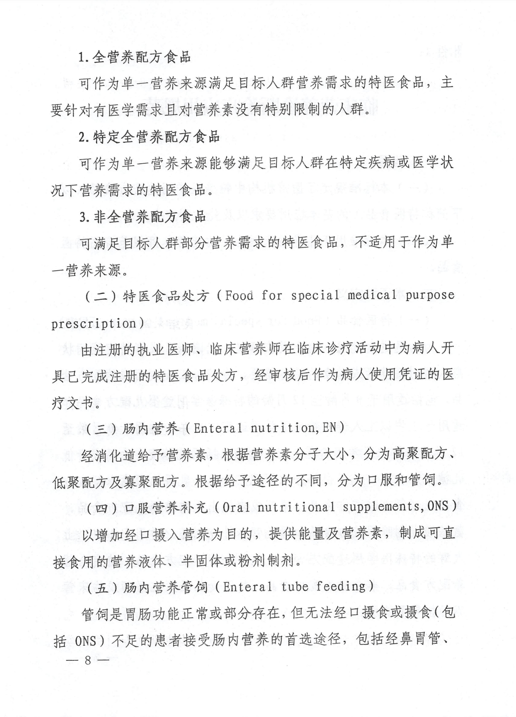 明確了特醫(yī)食品處方原則。由醫(yī)師和臨床營養(yǎng)師按照營養(yǎng)診療流程,掌握適應(yīng)癥及禁忌,規(guī)范開具特醫(yī)食品處方,并作為患者使用憑證的醫(yī)療文書。