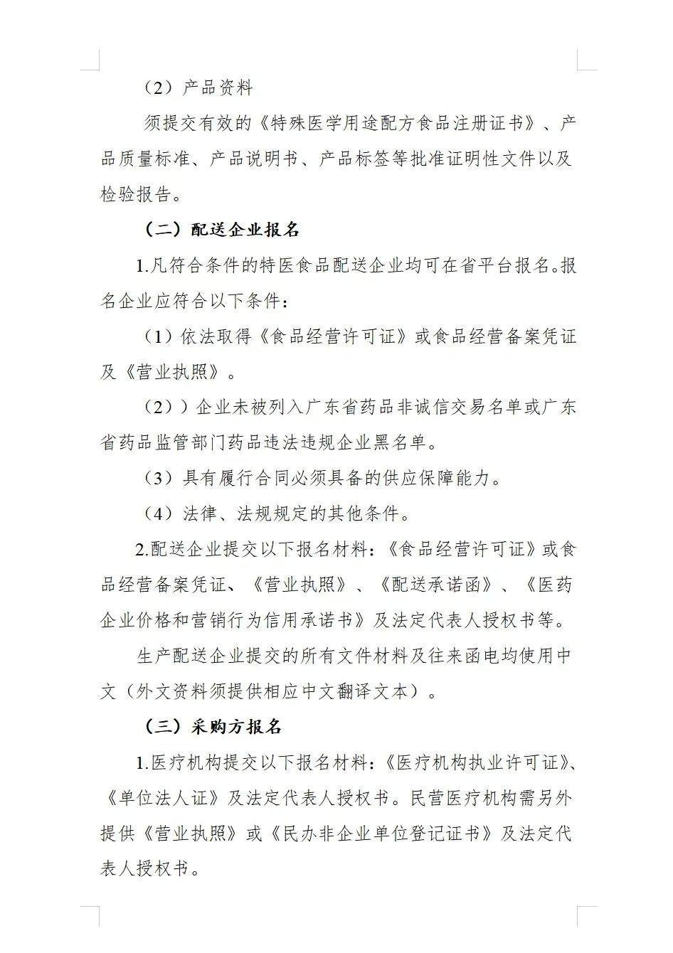 (三)取得特醫(yī)食品《食品經(jīng)營(yíng)許可證》且在省平臺(tái)注冊(cè)生效的配送企業(yè)。