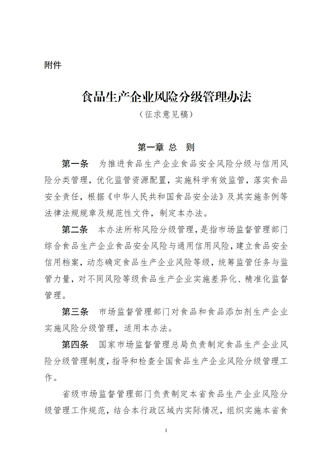 附件:食品生產企業(yè)風險分級管理辦法(征求意見稿)