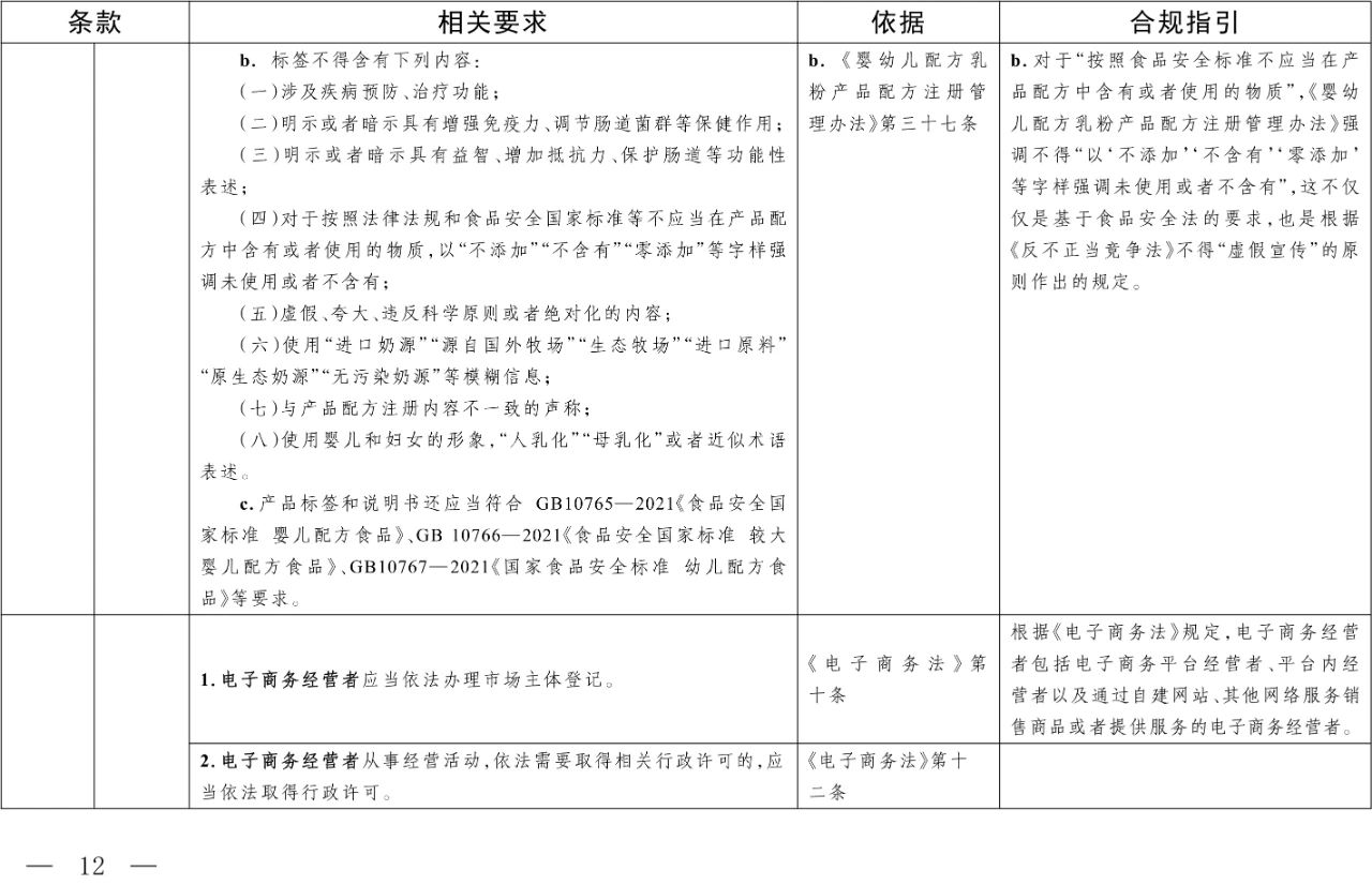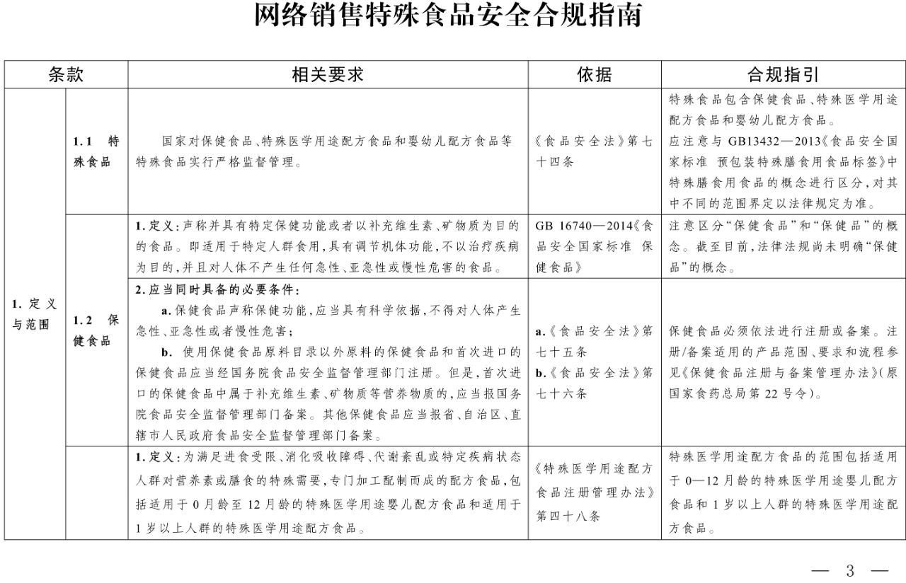 《指南》主要內(nèi)容包括“定義與范圍”“銷售的一般要求”“網(wǎng)絡(luò)銷售的特殊要求”三個部分,遵循線上線下一致原則,對現(xiàn)行法律法規(guī)等規(guī)定存在適用疑惑或規(guī)定間存在競合關(guān)系的情形作出指引性說明,對重要條款作出強(qiáng)調(diào)性說明,為特殊食品網(wǎng)絡(luò)銷售者提供了法律法規(guī)規(guī)定相對集中、具體適用規(guī)則更加明確的行政指導(dǎo)性意見。