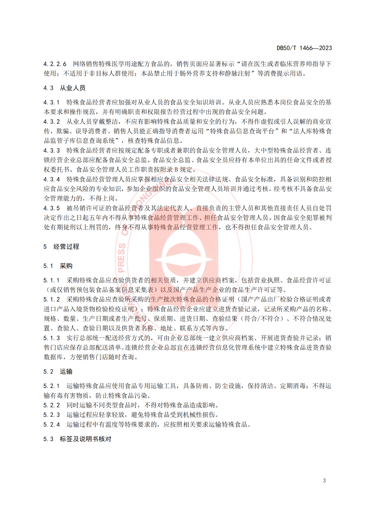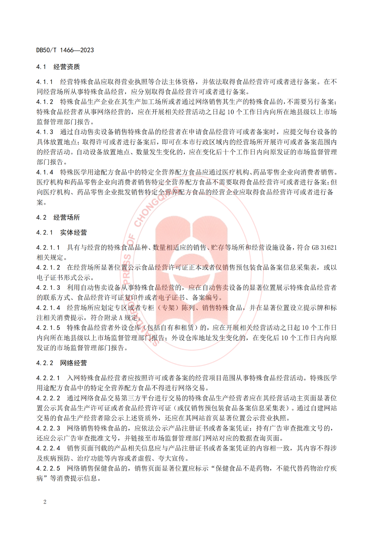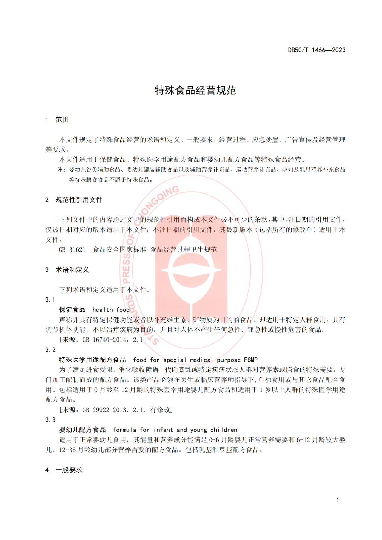 【地方標(biāo)準(zhǔn)】重慶發(fā)布《特殊食品經(jīng)營(yíng)規(guī)范》