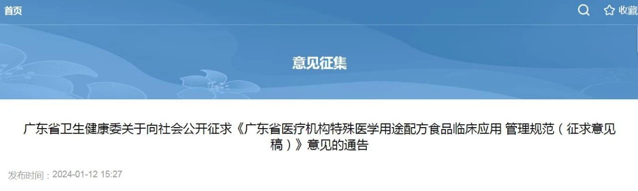 廣東省醫(yī)療機(jī)構(gòu)特殊醫(yī)學(xué)用途配方食品臨床應(yīng)用管理規(guī)范公開(kāi)征求意見(jiàn)