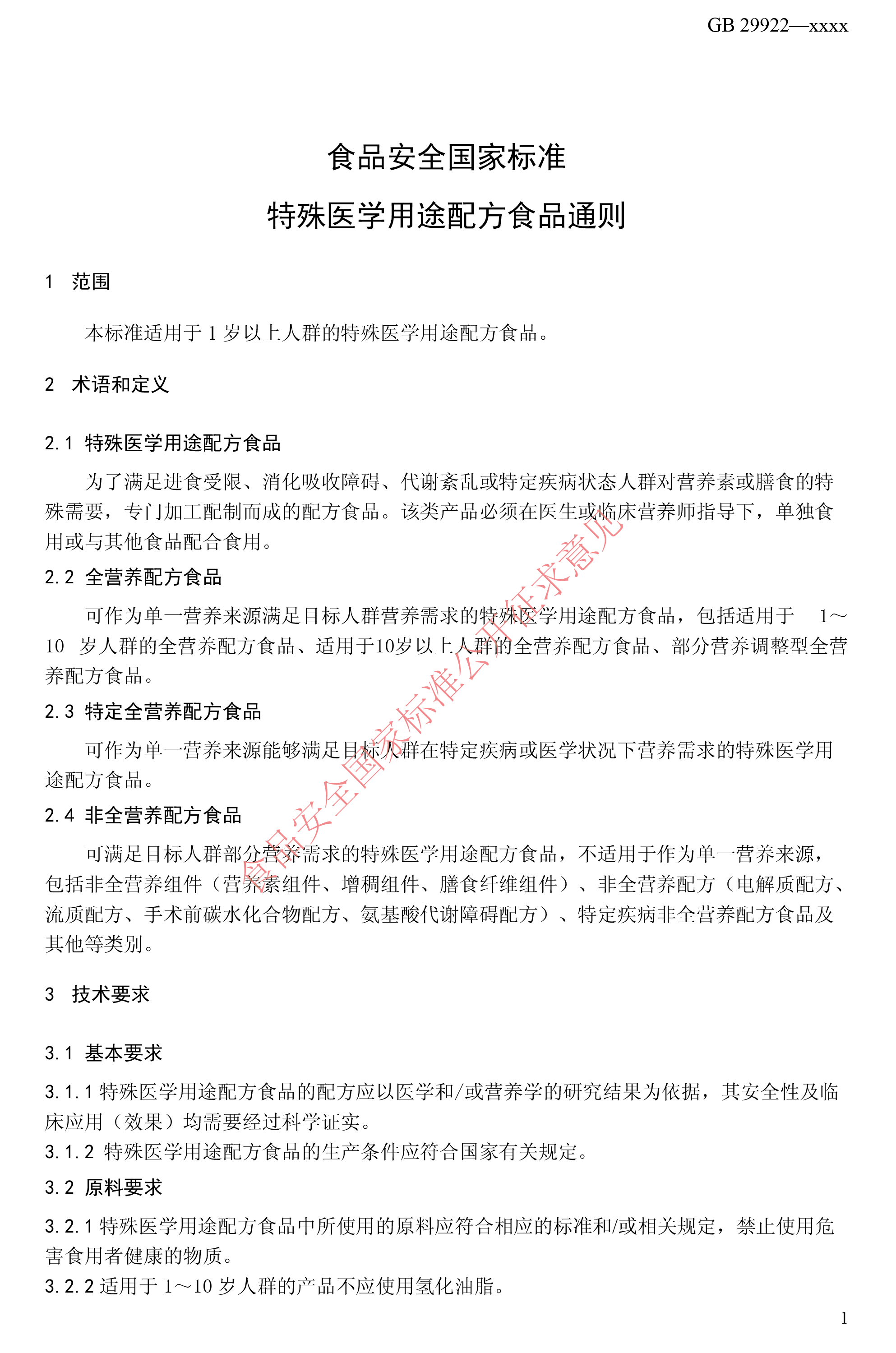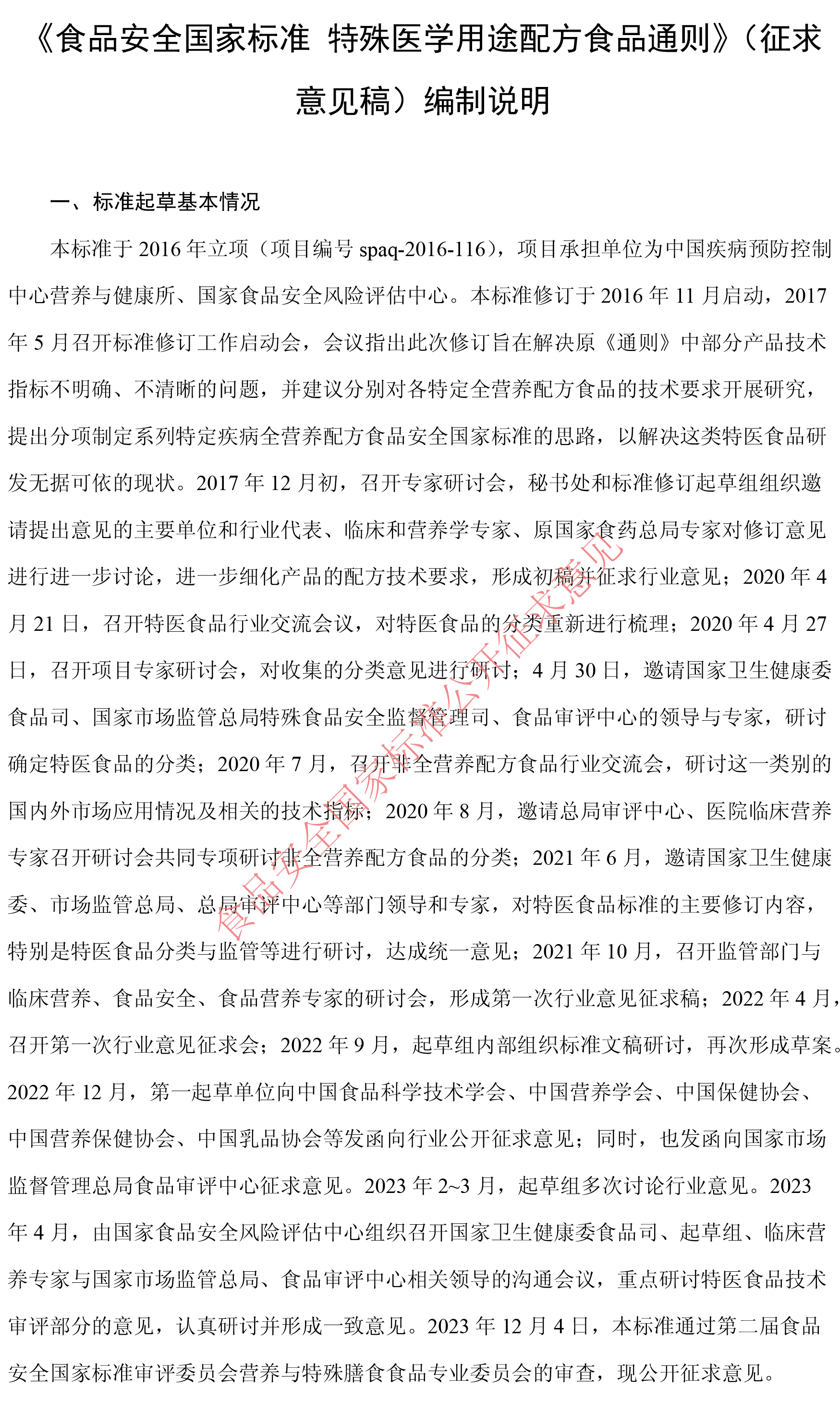國標《特殊醫(yī)學用途配方食品通則》公開征求意見