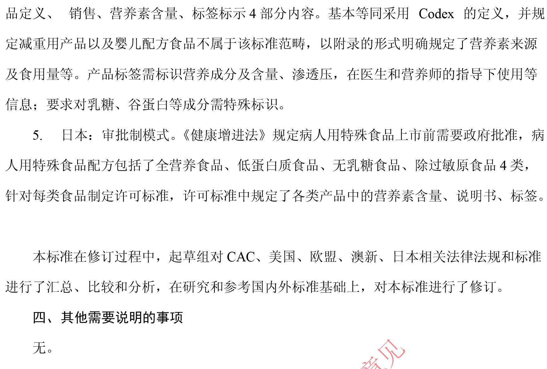 近日,食品安全國家標準評審委員會發(fā)布國家標準《特殊醫(yī)學用途配方食品通則(征求意見稿)》公開征求意見函,標準及編制說明見下文。
