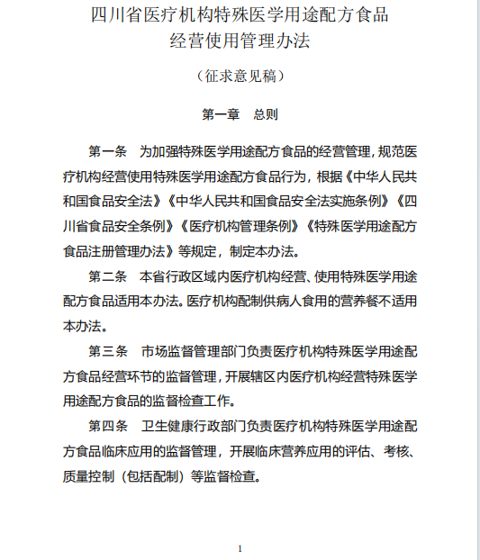 《四川省醫(yī)療機(jī)構(gòu)特殊醫(yī)學(xué)用途配方食品經(jīng)營(yíng)使用管理辦法(征求意見稿)》公開征求意見