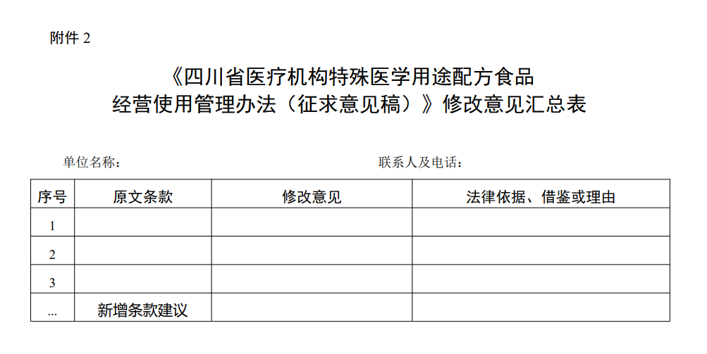 附件 《四川省醫(yī)療機(jī)構(gòu)特殊醫(yī)學(xué)用途配方食品經(jīng)營(yíng)使用管理辦法(征求意見稿)》修改意見匯總表