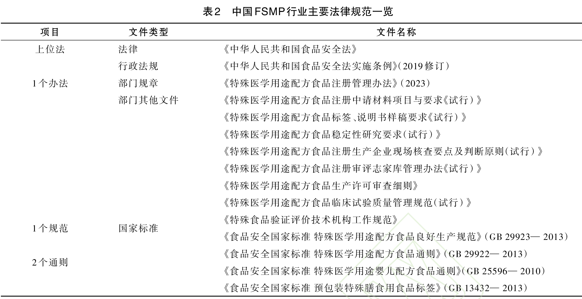 特醫(yī)食品早在 1974年于我國臨床應(yīng)用,此時特醫(yī) 食品被歸類為化學(xué)藥品,其銷售需經(jīng)藥品批準(zhǔn)后上市。自2010年起,我國陸續(xù)發(fā)布 《食品安全國家標(biāo)準(zhǔn) 特殊 醫(yī)學(xué)用途嬰兒配方食品通則》(GB 25596— 2010)、《食 品安全國家標(biāo)準(zhǔn) 特殊醫(yī)學(xué)用途配方食品通則》(GB 29922— 2013)、《食品安全國家標(biāo)準(zhǔn) 特殊醫(yī)學(xué)用途配方 食品良好生產(chǎn)規(guī)范》(GB 29923— t2013),分別就特醫(yī) 食品的成分及標(biāo)簽、流通環(huán)節(jié)、人員場所需求等作出明 確規(guī)定,初步形成了FSMP行業(yè)的三部強制性規(guī)范,自 此我國特醫(yī)食品建立起了 1個生產(chǎn)規(guī)范+2個產(chǎn)品通則+其它相關(guān)配套文件的食品安全國家標(biāo)準(zhǔn)管理模式 [5]。2015年,《食品安全法》重新修訂,首次將特醫(yī)食品歸入食品行業(yè)領(lǐng)域管理,明確特醫(yī)食品的注冊體制。隨著《特殊醫(yī)學(xué)用途配方食品注冊管理辦法》及6個配套文件的實行,我國 FSMP形成了“1+6”注冊管理體系。2023年,國家市場監(jiān)督管理總局在 CFDA2016年第24號令的基礎(chǔ)上,修訂了特醫(yī)食品注冊管理辦法(國家市場監(jiān)督管理總局令第85號),該規(guī)定已于 2024年1月1日正式施行,為FSMP行業(yè)管理提供了強有力的政策保障,促使FSMP行業(yè)持續(xù)健康發(fā)展。